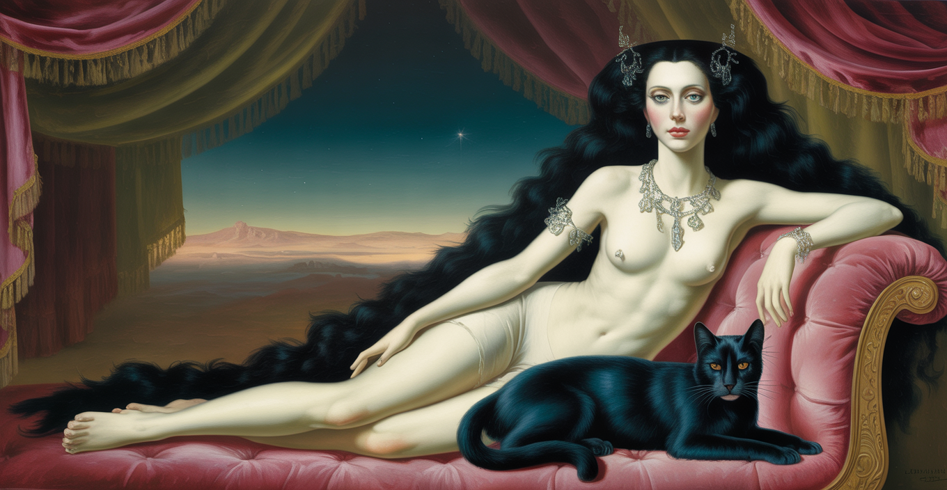 In the realm of Leonor Fini, the feline is no simple companion. It is priestess, oracle, seductress. A creature not