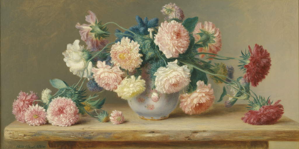 Works like “Roses in a Vase”, “Bouquet de Fleurs” or “Chrysanthemums” represent his approach well — intimate, softly luminous, and emotionally evocative.