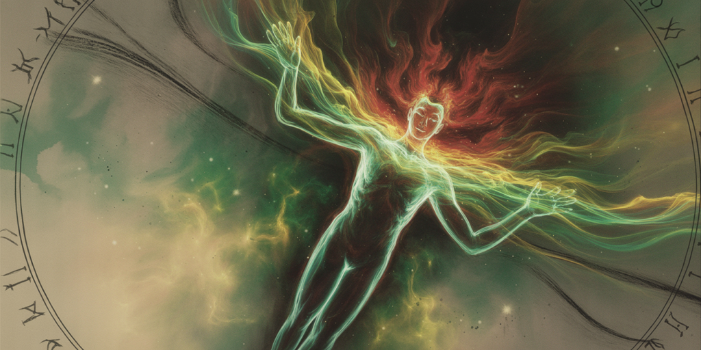 His arms extend like bridges between being and becoming. Shoulders bear galaxies. Fingers press into time. This is flesh sculpted from invocation, not clay.