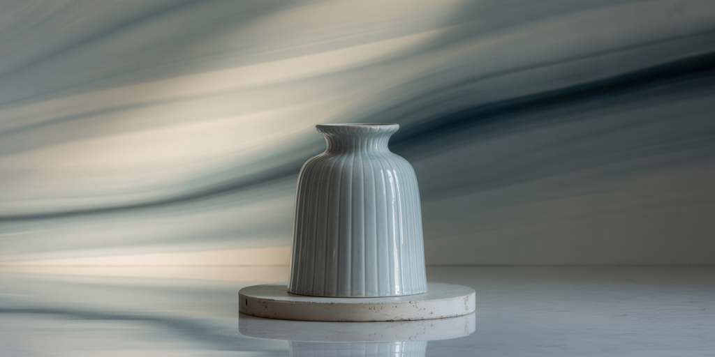 Touch is almost evoked — one can imagine the fingertip sliding over the glaze, meeting no resistance. Porcelain becomes skin. Or perhaps, spirit.